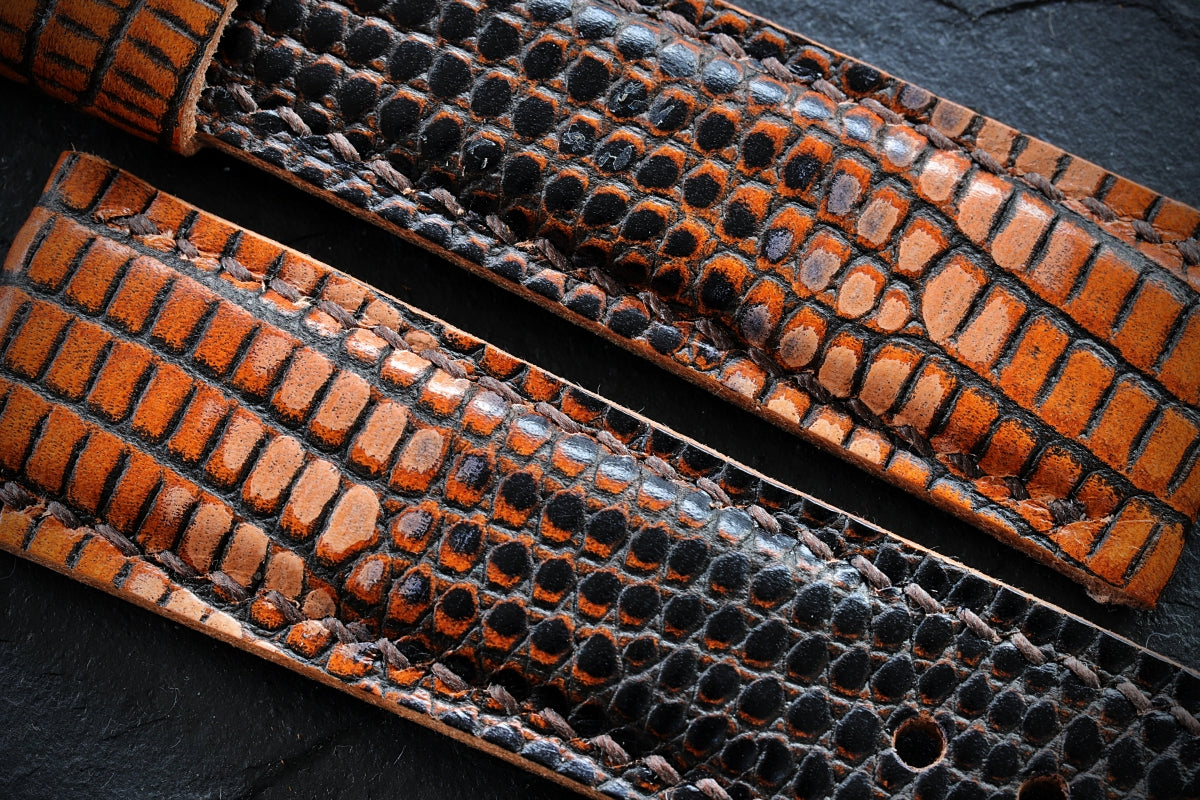 Jedes Band ein absolutes Unikat, das beigrößeren Breiten und kräftigen Uhren auch in einer bombierten (gepolsterten) Ausführung bestellt werden kann. Alle Größen sind machbar.