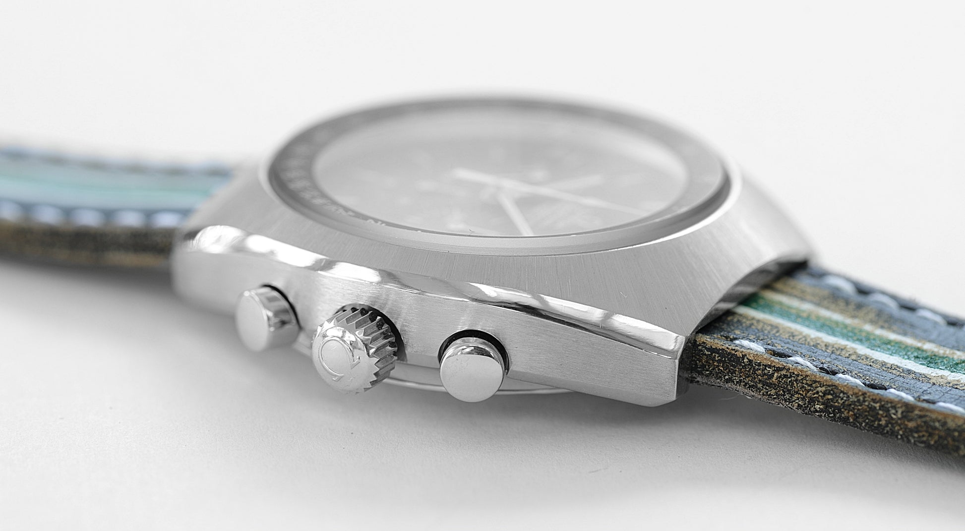 Die Speedmaster Mark II wurde 1969 als moderne Weiterentwicklung der legendären Moonwatch vorgestellt. Mit ihrem markanten tonneauförmigen Gehäuse, dem satinierten Stahl und dem sportlichen Racing-Dial verkörpert sie das Designgefühl der frühen 70er Jahre wie kaum eine andere Uhr.