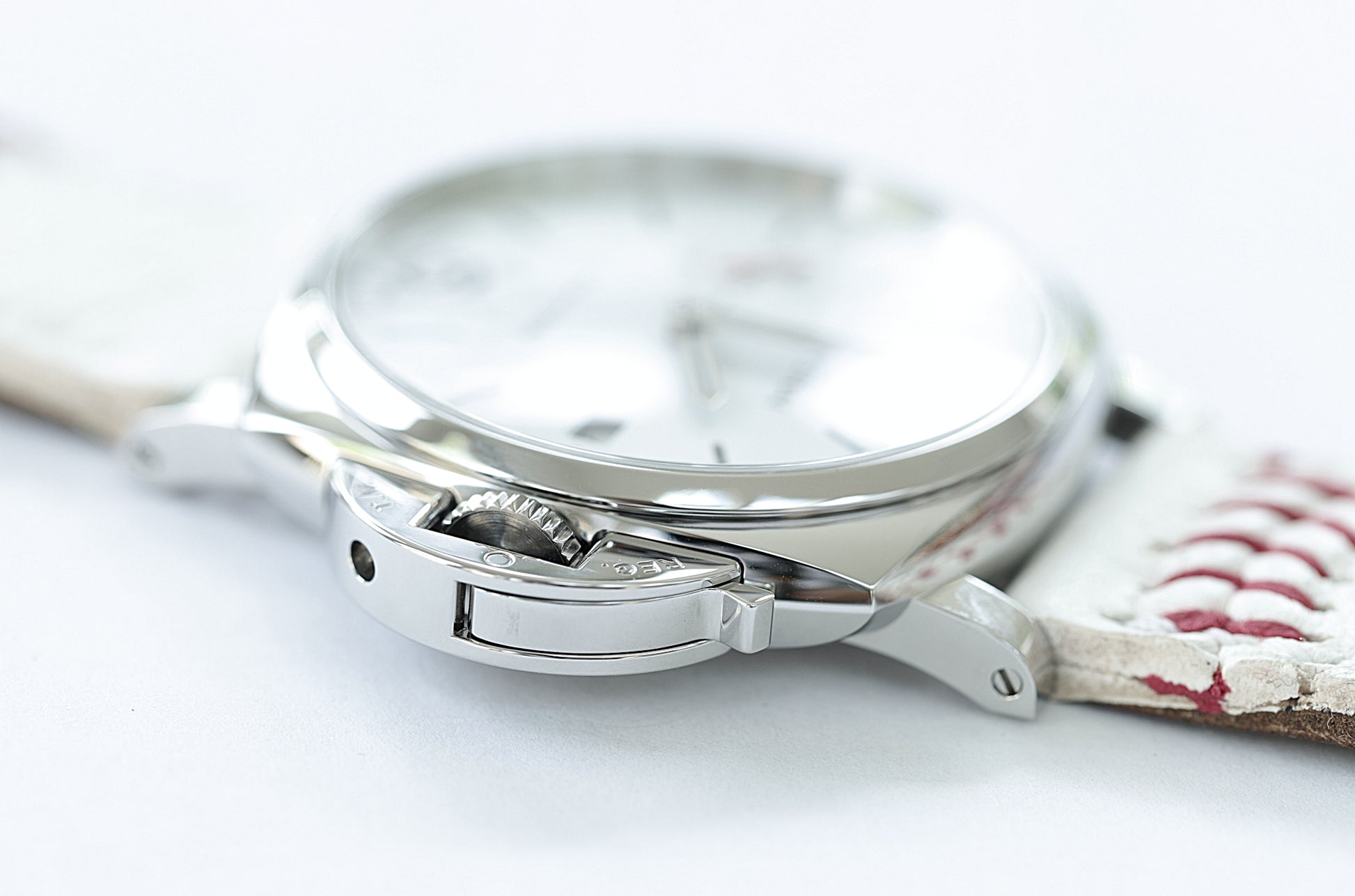 Dieses Exemplar stammt aus 05/2025 und wird als Full Set angeboten und kommt im ungetragenen Zustand. Inklusive Box, Papieren und sämtlichem originalen Zubehör. Zusätzlich zum originalen band habe ich ein Baseballband von "CH-Vintage" montiert. Das Band im Wert von 340,- Euro ist Teil des Angebotes.