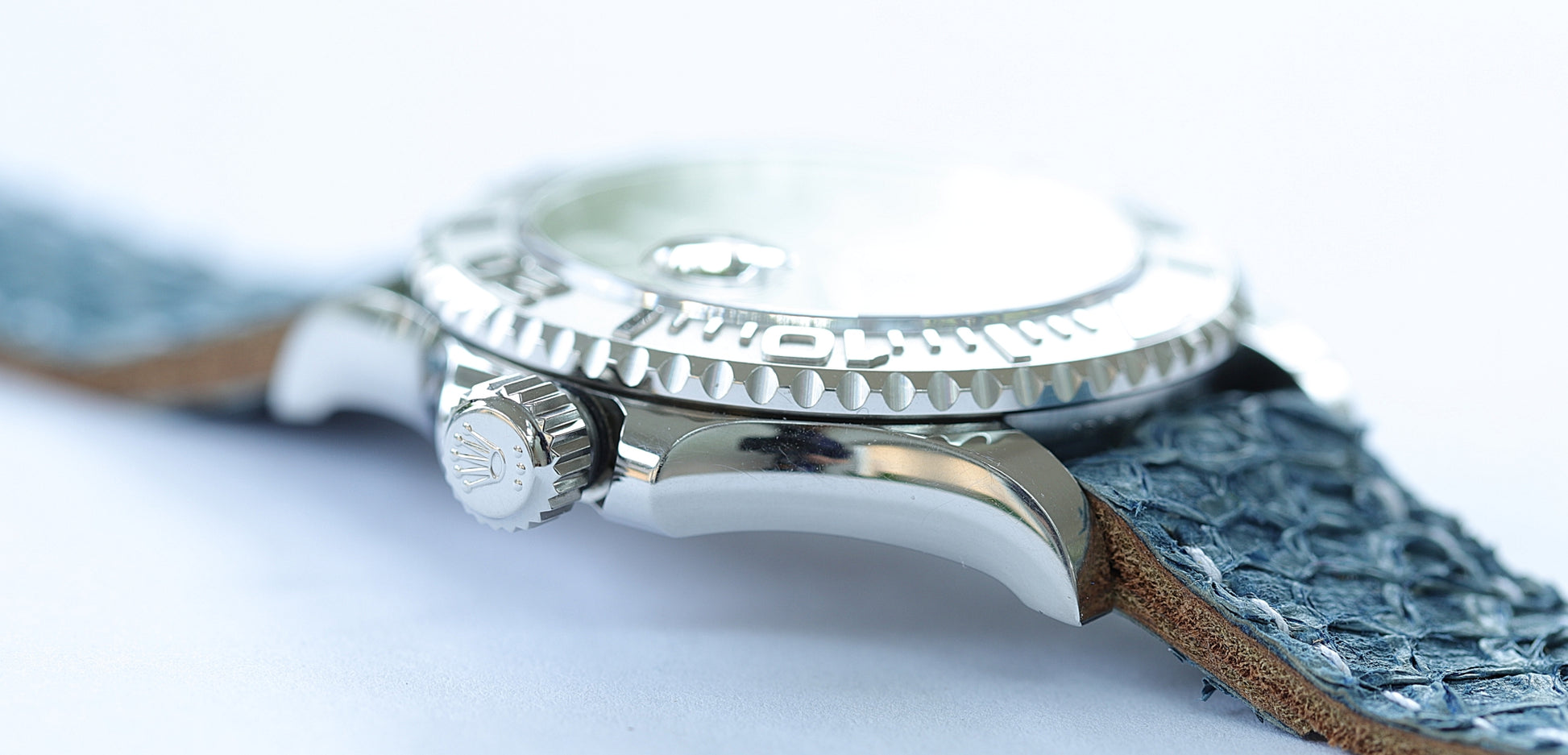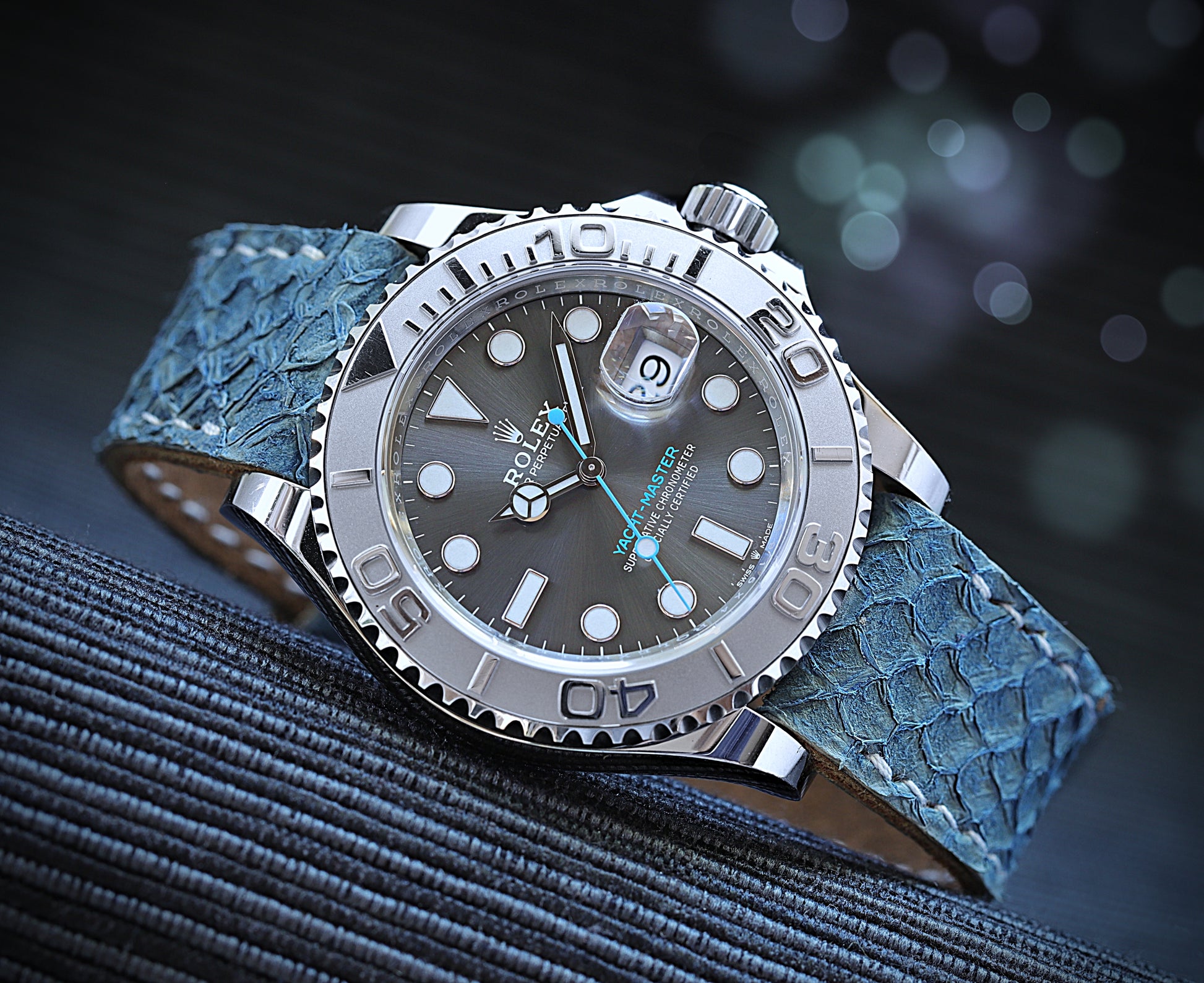 Die Referenz 126622 kombiniert ein robustes Oystersteel-Gehäuse mit der edlen Platin-Lünette – ein Detail, das dieser Yacht-Master ihre unverwechselbare, leicht schimmernde Anmutung verleiht. Maritim, elegant, souverän. Eine Rolex, die nicht schreit, sondern flüstert und für viele Damen die ideale Wahl darstellt. Vor allem in der Kombination mit dem montieren hellblauen Lederband - eine Sonderanfertigung von "Custom-Straps" mit einem Deckleder aus Lachshaut.
