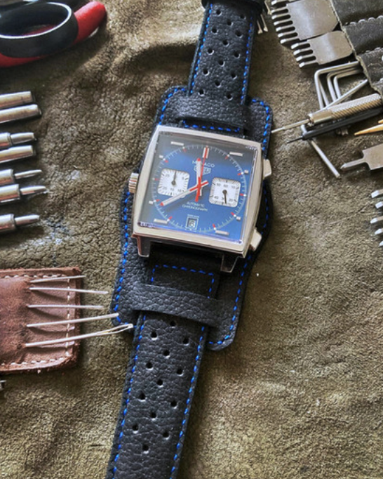 Die Kombinationen sind endlos, die Unterlage kann sowohl eckig, als auch abgerundet gefertigt werden. Besonders geeignet ist diese Bändervariante für Uhren, die nicht zu groß sind und durch das Band mehr Aufmerksamkeit am Arm erhalten.